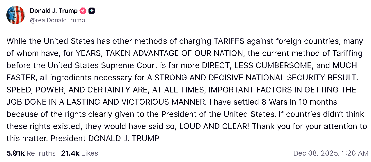 Posting on Truth Social, the President argued that the current legal pathway for imposing tariffs, now under scrutiny at the US Supreme Court, is “far more direct, less cumbersome, and much faster, all ingredients necessary for a strong and decisive national security result.” His message comes as the court is weighing the legality of his broad tariff powers.